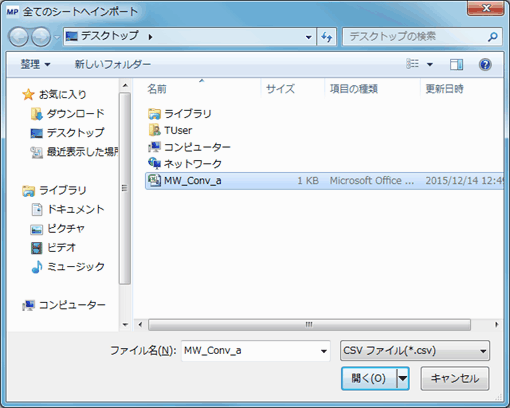 3. 次の画面が表示されましたら@で作成した抽出ファイルを指定し、[開く]をクリックしてください。
