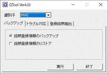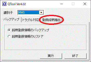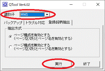 5. 抽出方式を選択後、識別子が「MWS」であることを確認して[実行]をクリックしてください。
